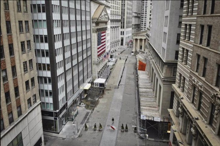 Quang cảnh vắng vẻ gần Sàn giao dịch chứng khoán New York