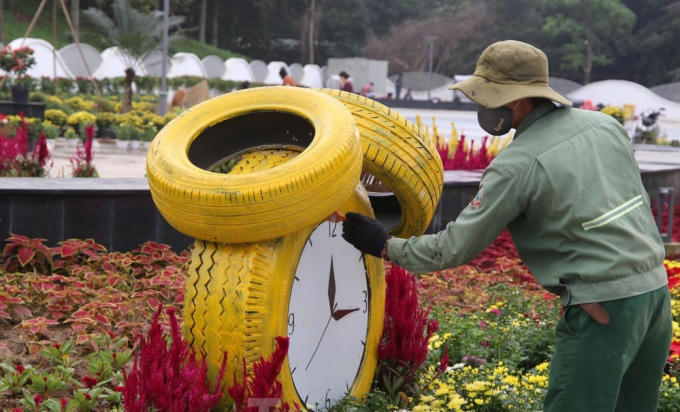 Như thường niên, phố hoa tại khu vực Quảng trường Hồ Chí Minh được trang điểm rực rỡ trước tết nguyên đán