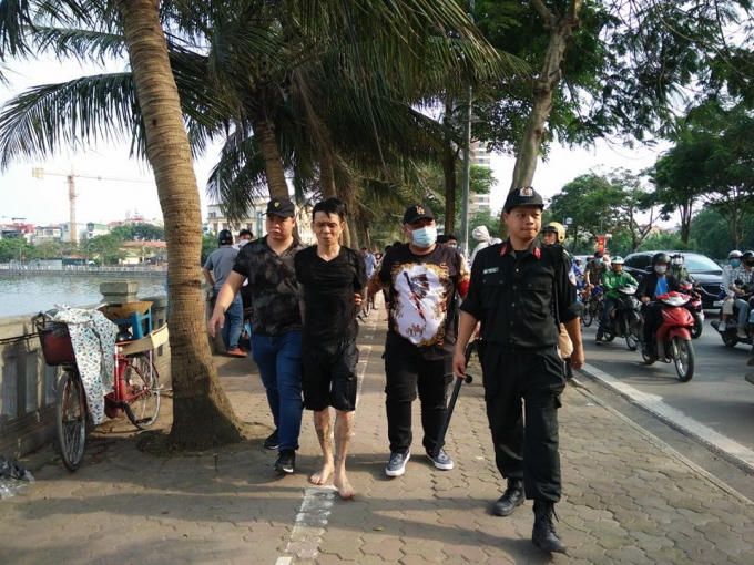 Phát hiện có Công an, thanh niên trên chạy lòng vòng nhưng thấy không thoát được đã vứt lại xe trên dải phân cách, trèo qua lan can nhảy xuống Hồ Tây. Tổ công tác đã huy động nhiều ca nô, vớt thanh niên trên trước khi kiệt sức cách bờ hồ hàng chục mét.