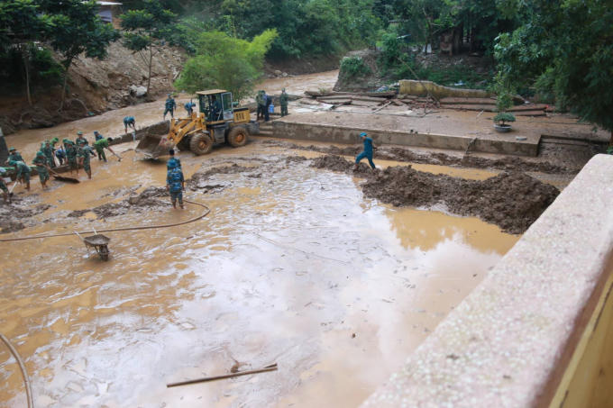 “Sau trận lũ hôm 28/8 nhà trường được người dân và lực lượng công an, bộ đội giúp đỡ, hỗ trợ dọn dẹp. Sau 2 ngày dọn xong được khu nhà ở của học sinh, lớp học và khu để thiết bị thư viện nhà trường thì ngày 30/8 lũ lại bất ngờ đổ về và mọi công sức đều trở về nguyên như cũ. Lượng bùn đất phủ sân trường càng nhiều và dày hơn”.