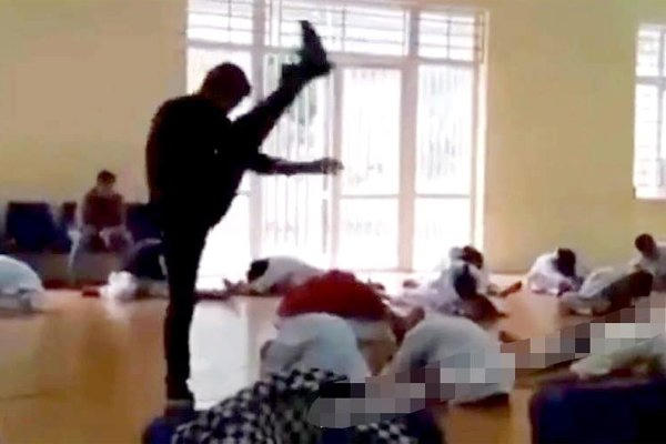 Theo clip đăng tải, người đàn ông mặc bộ đồ màu đen, đi giày thể thao được cho là thầy giáo dạy võ cho khoảng 20 em học sinh. Trong lúc tập luyện, người này thường dùng phương pháp đấm, đá vào lưng học sinh với những cú rất mạnh.