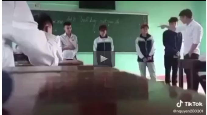 Không chỉ vậy, thầy giáo này còn ra chân đá mạnh vào ngực nam sinh mặc áo trắng khiến em này ngã ngửa về phía bục giảng.Trong số những học sinh này, có em mới vi phạm lần đầu, có em vi phạm nhiều lần. Nguyên nhân được cho là do nóng giận, giáo viên Khúc Xuân Hoà đã có hành vi không chuẩn mực với học sinh và bị ghi lại trong một clip phát tán trên mạng xã hội.
