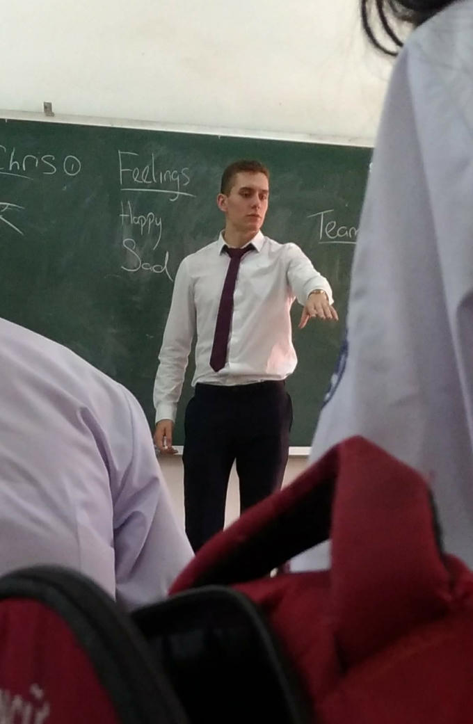 Các thầy giáo đến từ nước ngoài luôn tạo ra một sự thích thú đặc biệt đối với các bạn học sinh Việt, không chỉ vì cách dạy, cách trò chuyện, khả năng ngoại ngữ mà còn 1 lý do cũng to to chẳng kém nữa là các thầy ai cũng... rất điển trai. Chưa hết, các thầy hầu như ai cũng rất gần gũi và gắn kết với học sinh nữa, cho nên cũng chính họ là người nghĩ ra không ít trò "lầy lội" để cùng vui vẻ với lớp mình.