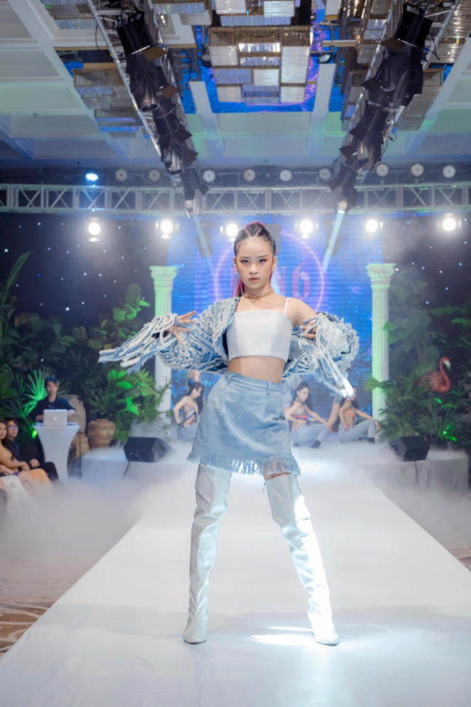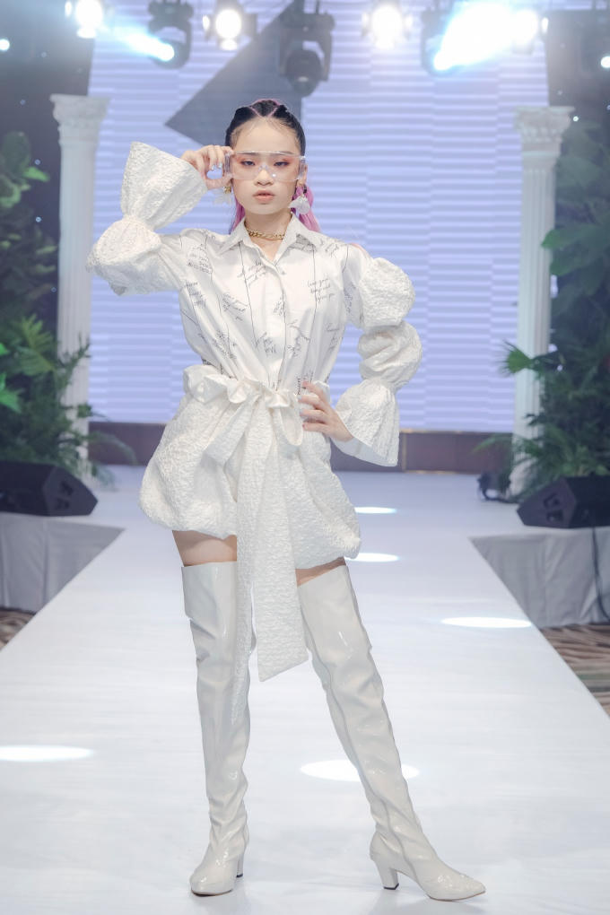 Ghi điểm ngay từ những phút giây đầu của show diễn, chân dài nhí tiếp tục gây thương nhớ bởi những bước chân uyển chuyển và nhan sắc xinh đẹp trong 2 BST Trắng Đen và Pastel.