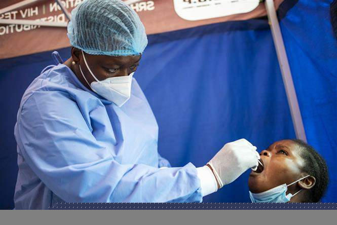 Nhân viên y tế lấy mẫu xét nghiệm COVID-19 cho người dân tại Johannesburg, Nam Phi. Ảnh: AFP/TTXVN