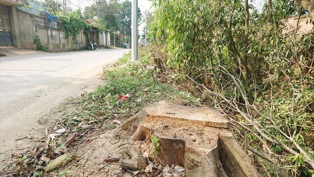 Một số hình ảnh cây xanh bị chặt hạ ở khu vực xóm chợ Hạ Bằng, Thạch Thất, Hà Nội: