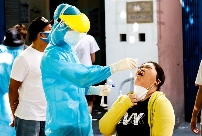 Lấy mẫu xét nghiệm các cư dân "phố chung cư" sống tại các block chung cư có người mắc COVID-19. Ảnh: Quốc Huy