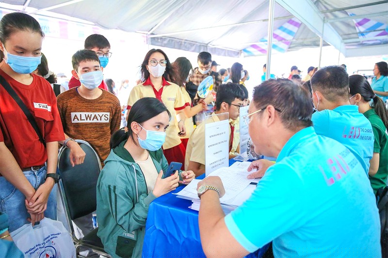Thí sinh tìm hiểu thông tin tuyển sinh năm 2021 tại các trường đại học ở TP.HCM. Ảnh: NTCC