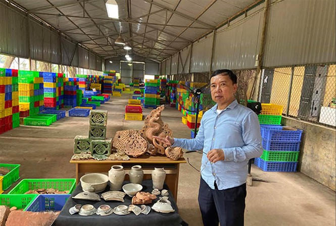 Thời Lý có chân tảng đá cát, mảnh lá đề rồng cỡ lớn, mảnh mào tượng rồng cỡ lớn bằng đất nung, một số mảnh gạch lát nền hoa sen, hoa cúc. Số lượng hiện vật thời Trần khá nhiều: Gạch in chữ Vĩnh Ninh trường, gạch vuông, ngói sen, ngói mũi lá, gốm men nhiều loại của Việt Nam, một số ít của Trung Quốc.