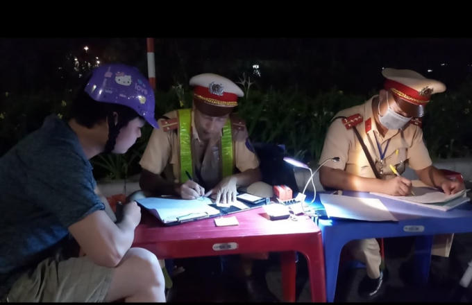Lực lượng chức năng lập biên bản xử lý người vi phạm.