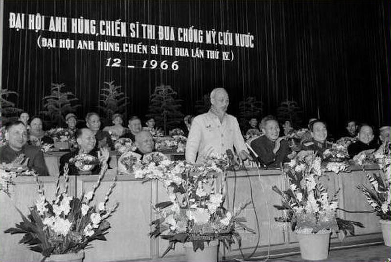 Chủ tịch Hồ Chí Minh nói chuyện tại Đại hội Anh hùng, Chiến sĩ thi đua chống Mỹ, cứu nước (12/1966). Ảnh tư liệu.