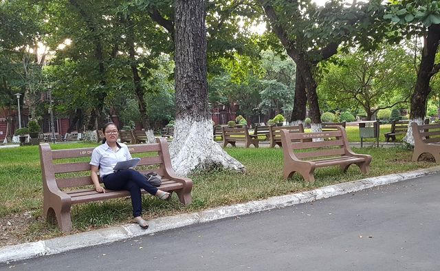 Có mặt sớm nhất tại điểm thi trường THPT chuyên Quốc Học (TP Huế) vào 5h40’, em Trần Thị Hương Giang, học sinh 12 chuyên Văn trường chuyên Quốc Học là thí sinh đến sớm nhất để ôn bài.