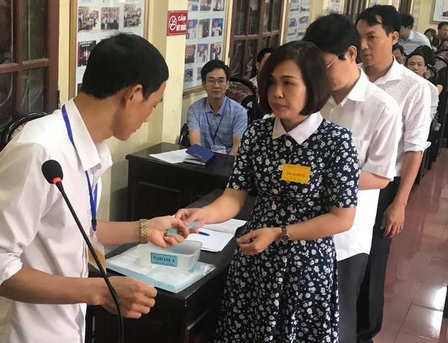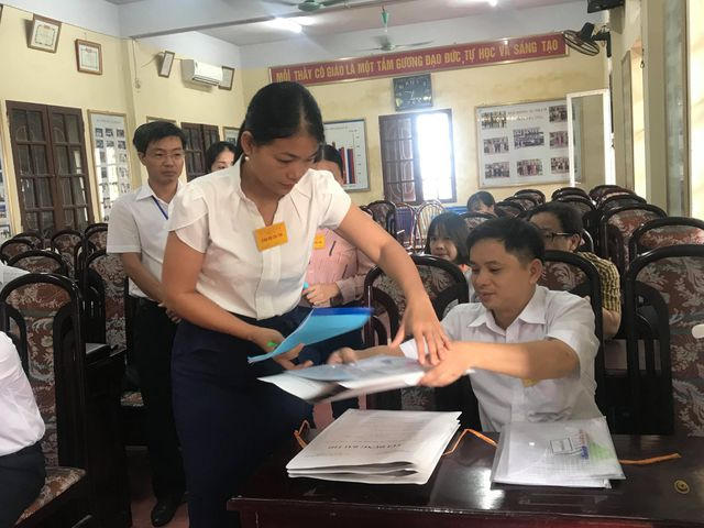 Sáng 25/6, tại điểm thi 06 Trường THPT Gia Lộc II Hải Dương, các giáo viên bốc thăm nhận phòng thi. Thí sinh tranh thủ ôn lại môn Văn trước giờ làm bài.
