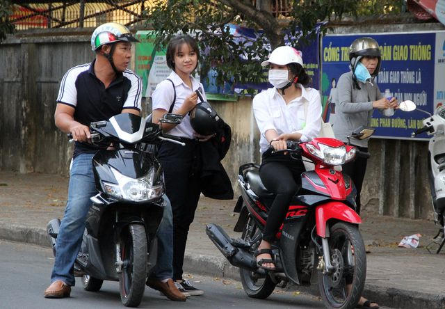 Lo ngại việc tắc đường, sẽ ảnh hưởng đến kỳ thi vô cùng quan trọng của con, nhiều phụ huynh đã dậy sớm để đưa con đến điểm thi. Đây là môn thi đầu tiên nên cả thí sinh và phụ huynh đều rất lo lắng.