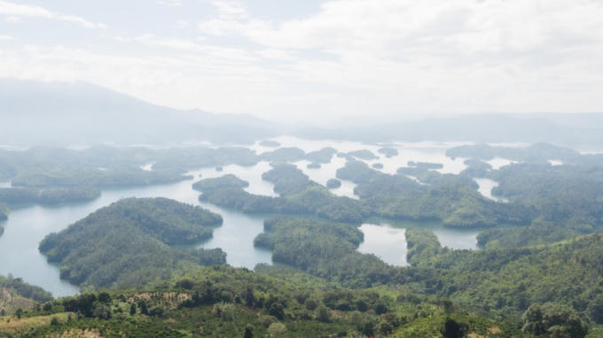 Lòng hồ Tà Đùng có diện tích rộng gần 5.000 ha mặt nước với hơn 40 hòn đảo và bán đảo lớn nhỏ tạo nên cảnh quan thiên nhiên vô cùng độc đáo.