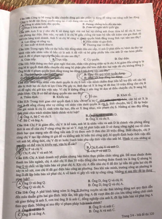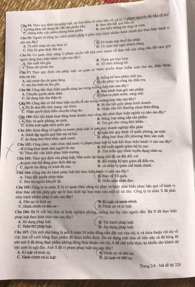 Đề thi môn Giáo dục công dân, mã đề 320.