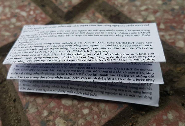 Bên cạnh đó, tại cổng trường ĐH Thủy Lợi xuất hiện khá nhiều "phao" ngay khi môn thi Lịch sử kết thúc.