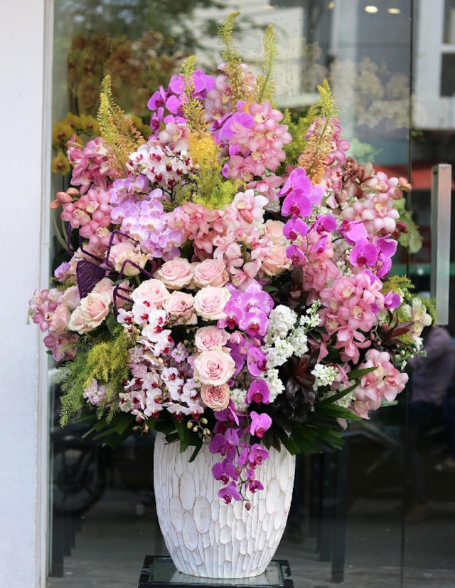 Một thẩm mỹ viện tại quận 1 cũng “chịu chơi” không kém khi bỏ ra 40 triệu đồng để đặt một bình hoa gồm lan hồ điệp và hoa hồng.