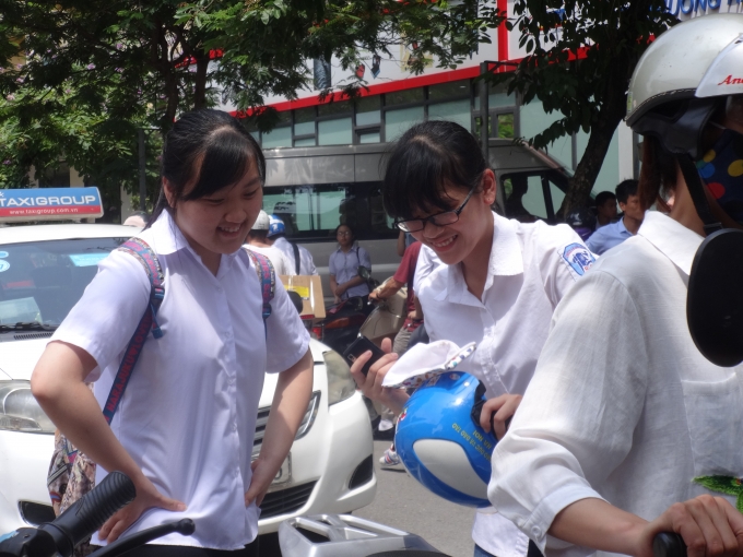 Vui mừng vì làm bài thi tốt, em Trần Thu Hà, thi sinh tham dự kỳ thi cho biết: "Đề thi năm nay không quá khó, em làm bài được. Em tự tin là được 8 điểm".