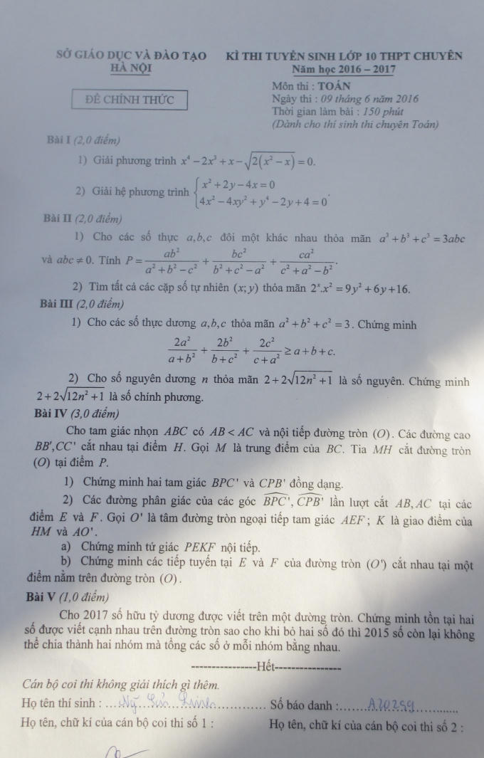 Kết thúc ngày thi thứ 2 của kỳ thi tuyển sinh vào lớp 10 năm 2016 - 2017, các thí sinh đều cho rằng, đề Toán chuyên năm nay khó hơn năm ngoái. Mặc dù đã tận dụng hết thời gian 150 phút, nhiều em không làm hết đề thi.