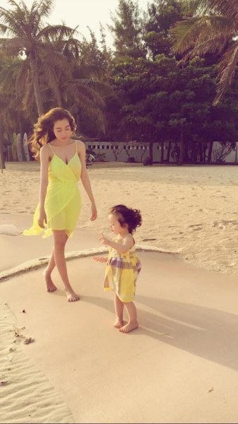 Mới đây, trên trang cá nhân của mình, Elly Trần lại tiếp tục tung bộ ảnh “lần đầu đi biển” của thiên thần Cadie Mộc Trà với mẹ.
