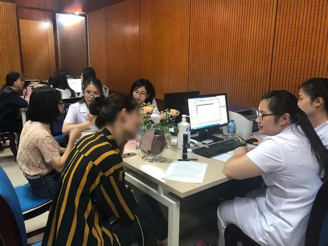 Sáng 3/3, cô gái trẻ được mẹ đưa đến BV Da liễu Trung ương Khám. Mặt đeo khẩu trang kín mít, cô gái ngại ngùng vì vùng trán như “quái nhân” của mình.