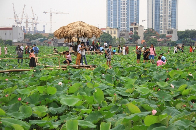 Một góc hồ sen Xuân Đỉnh vào buổi chiều hè.