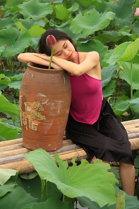 Đến hẹn lại lên vào những dịp hoa sen đua nở, các thiếu nữ lại đến với hồ sen để có những tấm hình ưng ý nhất.