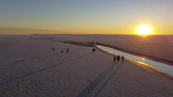 Các du khách chụp ảnh và đi dạo ở hồ Tuz, khu vực gần tỉnh Ankara của Thổ Nhĩ Kỳ. Ảnh: AP/Emrah Gurel