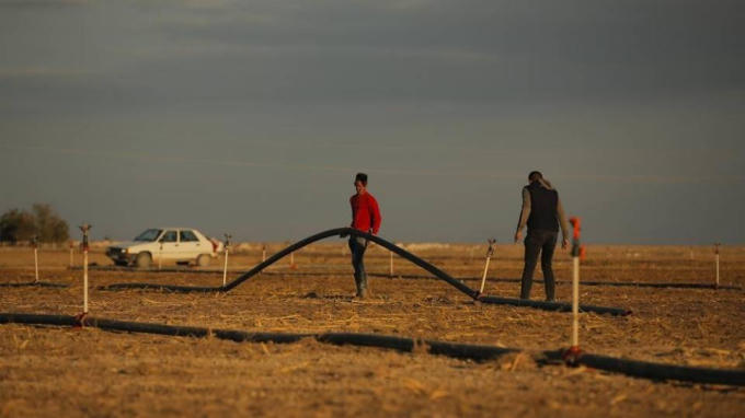 Một người nông dân đang tưới nước cho cánh đồng của mình, gần khu vực hồ Tuz thuộc thành phố Aksaray của Thổ Nhĩ Kỳ. Ảnh: AP/Emrah Gurel