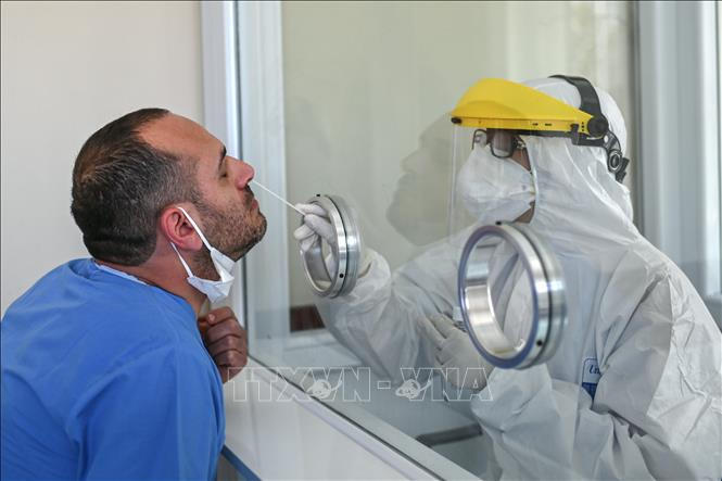 Nhân viên y tế lấy mẫu xét nghiệm COVID-19 cho người dân tại Istanbul, Thổ Nhĩ Kỳ ngày 10/4/2020. Ảnh: AFP/TTXVN