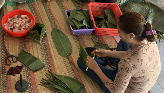 Những chiếc bánh chưng lá riềng của ông Can sắp được đưa vào nồi nấu.