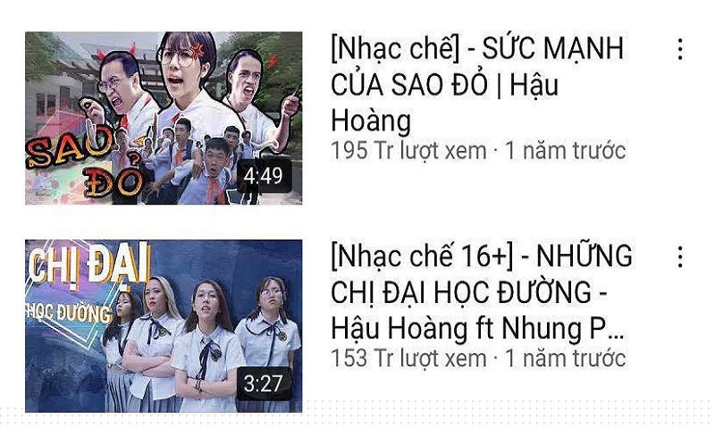 Các video triệu views của Hậu Hoàng.