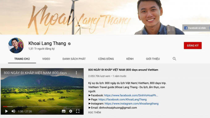 Kênh YouTube Khoai Lang Thang.