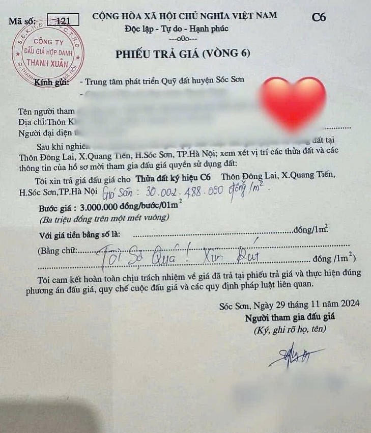 Tuy nhiên, sang đến vòng thứ 6 nhóm khách hàng này đồng loạt không trả giá. Các thửa đất đấu giá không thành công. UBND huyện Sóc Sơn đã đề nghị cơ quan công an vào cuộc xác minh.