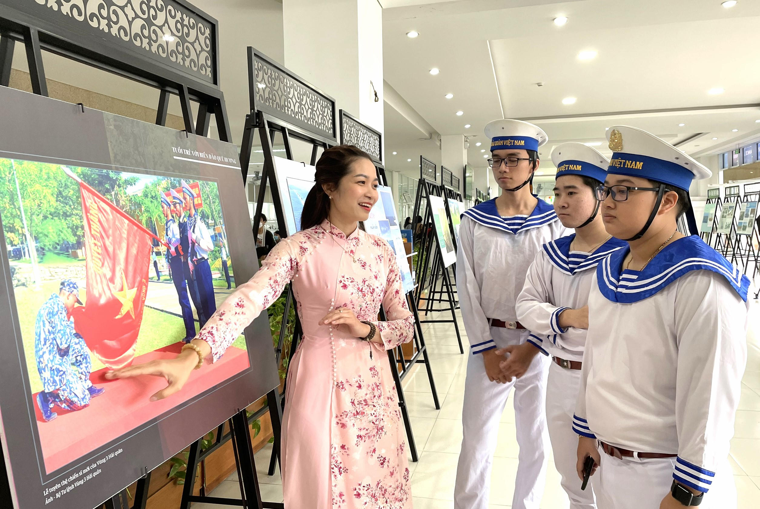 Triển lãm cũng giới thiệu những hình ảnh về huấn luyện sẵn sàng chiến đấu bảo vệ biển đảo, tìm kiếm cứu nạn của các lực lượng chức năng đặc biệt là Hải quân vùng 3 đã và đang ngày đêm kiểm soát tốt tình hình trên biển, trên không và địa bàn. Niềm tự hào và nhiều cảm xúc của Lễ tuyên thệ chiến sĩ mới của Vùng 3 Hải quân. Triển lãm cũng giới thiệu những hình ảnh giản dị, thường nhật của các cán bộ chiến sĩ ngày đêm giữ biển. Xuân về trên những con tàu giữ biển. Phút giải lao trên boong tàu, hình ảnh tháng ba biên giới, những công dân nhí ở Trường Sa…