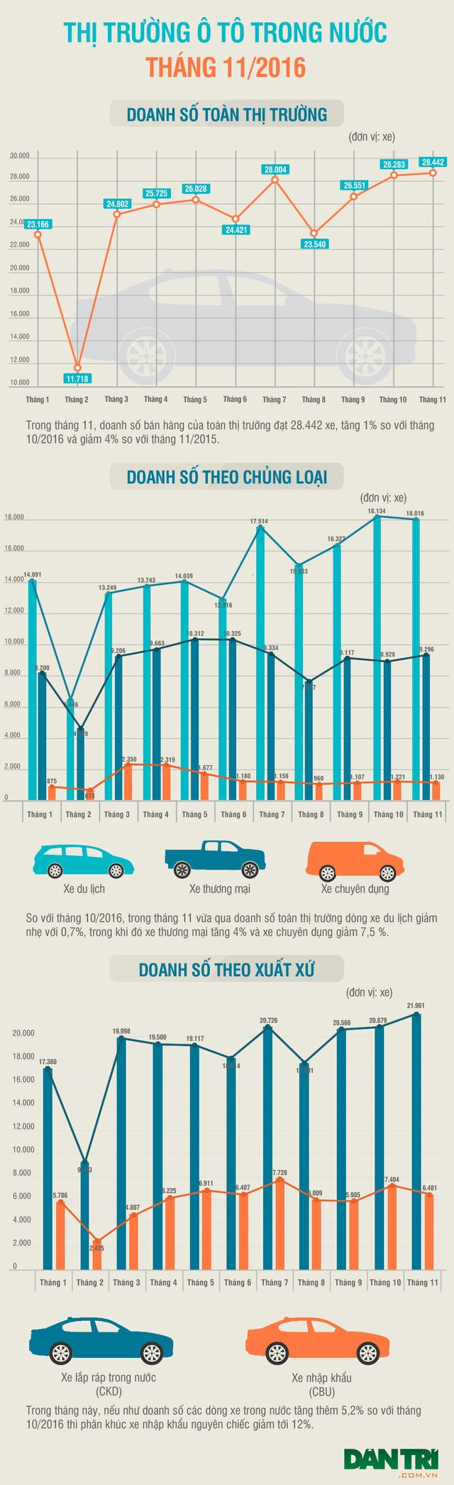 Và trên thực tế, nếu tính số lượng xe bán ra kể từ đầu năm, mọi chỉ số bán hàng đều tăng mạnh; với tổng doanh số bán hàng tăng 26%, xe ôtô du lịch tăng 26%; xe thương mại tăng 25% và xe chuyên dụng tăng 33%, và nếu tính về xuất xứ của xe thì số liệu tăng trưởng bao gồm doanh số bán hàng của xe lắp ráp trong nước tăng 33%, xe nhập khẩu tăng 7% so với cùng kì năm ngoái.