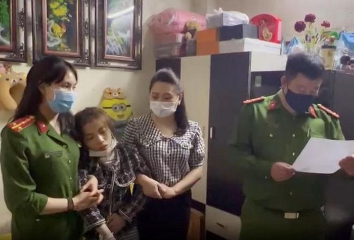 Khi đọc lệnh khám xét, trước sự chứng kiến của chồng, Trần Thị Thanh Hải đứng không vững