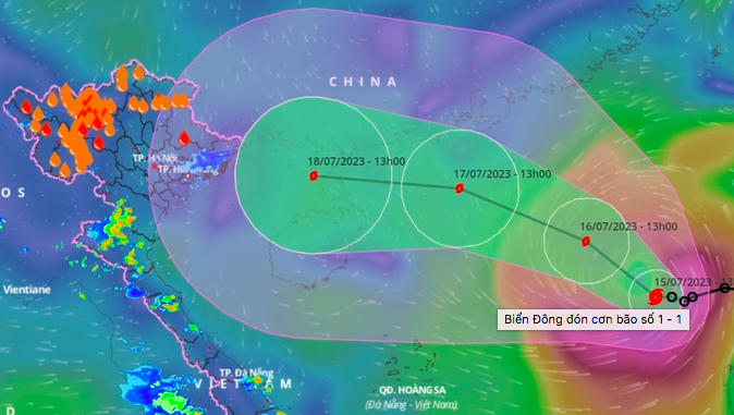 Theo Trung tâm Dự báo khí tượng thủy văn quốc gia, hồi 19h ngày 15/7, vị trí tâm bão ở vào khoảng 18,3 độ Vĩ Bắc; 117,5 độ Kinh Đông, cách bán đảo Lôi Châu (Trung Quốc) khoảng 810km về phía Đông Đông Nam. Sức gió mạnh nhất vùng gần tâm bão mạnh cấp 8 (62-74km/giờ), giật cấp 10.