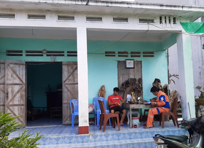 Cán bộ điện lực làm việc với hộ gia đình bà Gái.