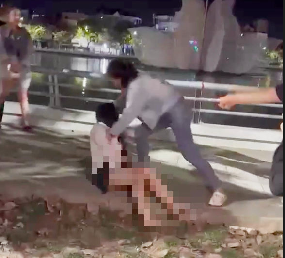 Một người phụ nữ khác (sau này được xác định là Q.) cũng xông vào dùng mũ bảo hiểm đánh vào người N. Cô gái liên tục bị đánh, vật xuống đất, nắm tóc và bị kéo rách quần áo mà không thể chống cự.