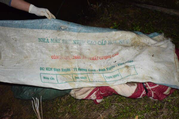 Thi thể người phụ nữ bị cuốn chăn bọc trong bao tải.