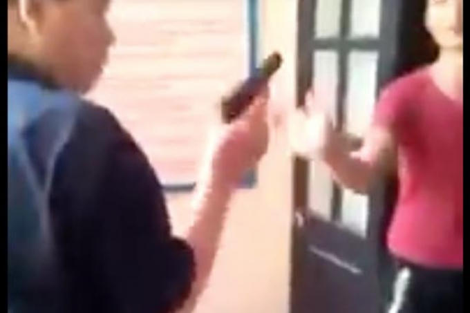Người đàn ông này luôn miệng đe doạ “bắn” những người xung quanh với các câu: "tao bắn phát chúng mày chết ngay, tao có quyền bắn chúng mày", "chúng mày tưởng oai..."...