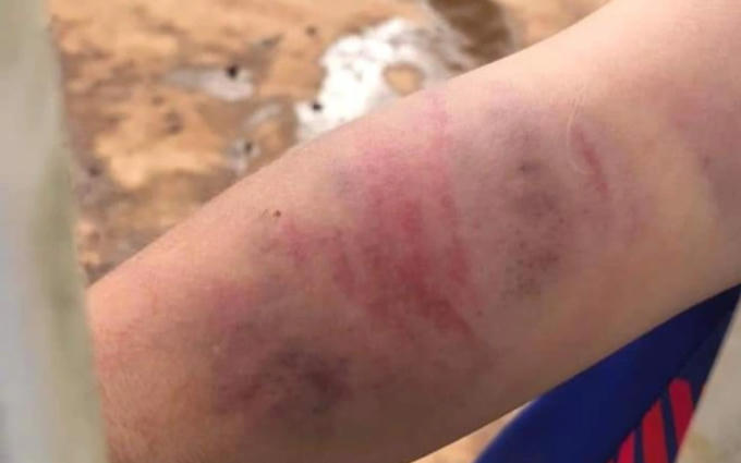 Vết bầm khắp người bé trai (Ảnh: Cao Nguyên)