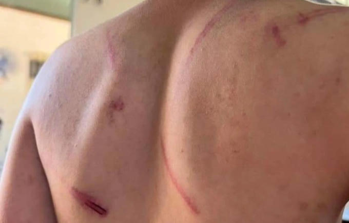 Nhiều vết bầm, rách trên lưng bé trai 9 tuổi tại huyện Cư Kuin (Đắk Lắk) nghi do bị bố đẻ và bà nội bạo hành (Ảnh: Cao Nguyên)