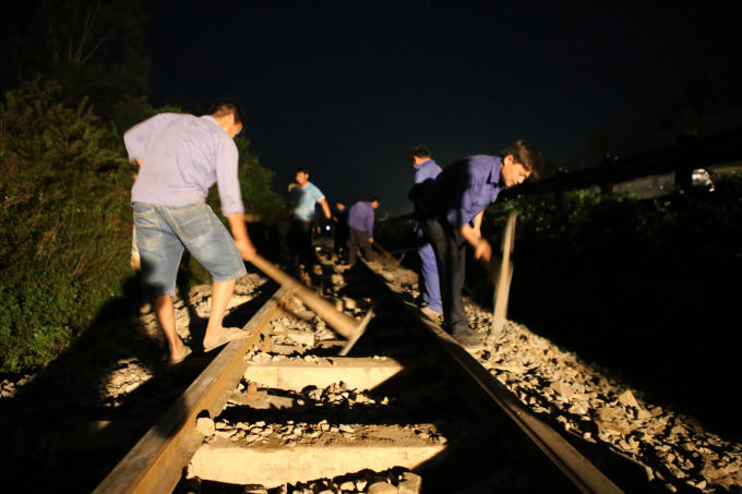 Ngay sau đó, khoảng 70 công nhân đường sắt được huy động để khắc phục sự cố. Nhiều thanh tà vẹt bị gãy vỡ, đinh ốc bị bung... Đến khoảng 0h30’ ngày 19/2, tàu qua khu vực này thông trở lại với vận tốc 5 km/h. Ngành đường sắt đang sửa chữa và dự kiến để hôm nay tàu trả vận tốc bình thường khi qua đoạn xảy ra sự cố.