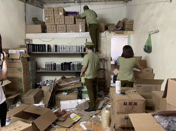 Cụ thể, ngày 19/3 Đội QLTT số 1, Cục QLTT Hà Nội phối hợp với thành viên Tổ công tác 368 - Tổng cục QLTT và Đội QLTT số 22 tiến hành kiểm tra một phòng trọ sinh viên (ngõ 56 đường Cầu Vồng, phường Đức Thắng, Bắc Từ Liêm, Hà Nội) phát hiện gần 50.000 sản phẩm mỹ phẩm dành cho tóc như dầu gội đầu, sáp vuốt tóc, keo xịt tóc, dưỡng tóc các loại giành cho nam giới do ông Trần Đức Trường làm chủ không rõ nguồn gốc xuất xứ.