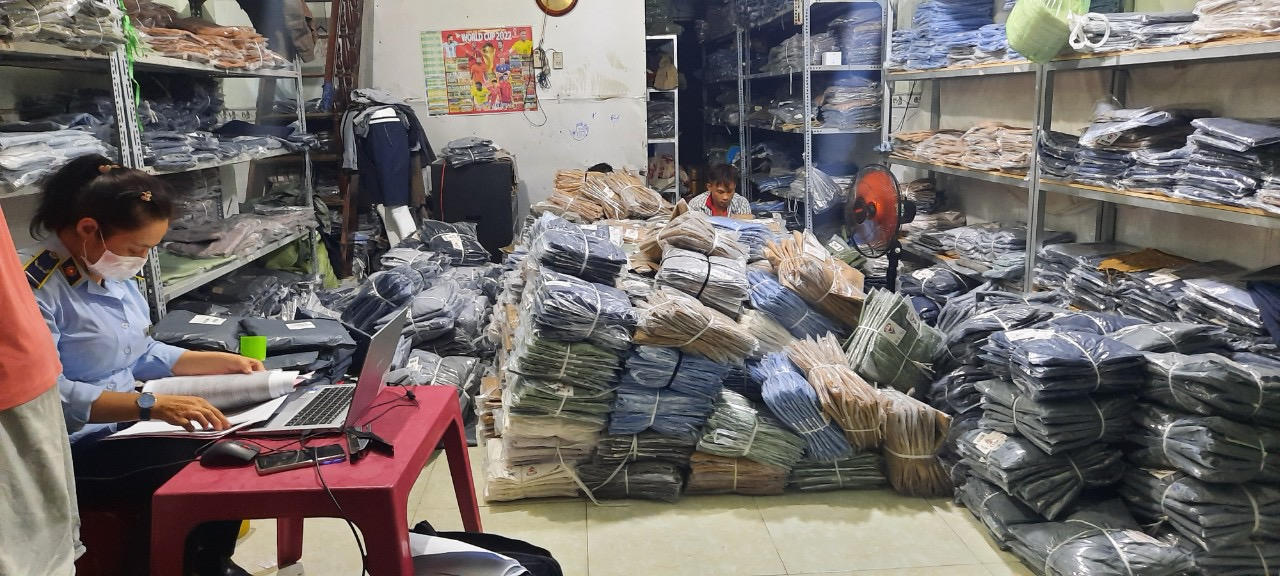 Tại thời điểm kiểm tra, lực lượng chức năng phát hiện tại cơ sở này chứa 1.640 chiếc quần kaki với tổng giá trị trên 217 triệu đồng, số hàng này có dấu hiệu giả mạo nhãn hiệu Under Armour là một công ty của Mỹ chuyên sản xuất giày dép, quần áo, đồ dùng may mặc hiện đang được bảo hộ tại Việt Nam.