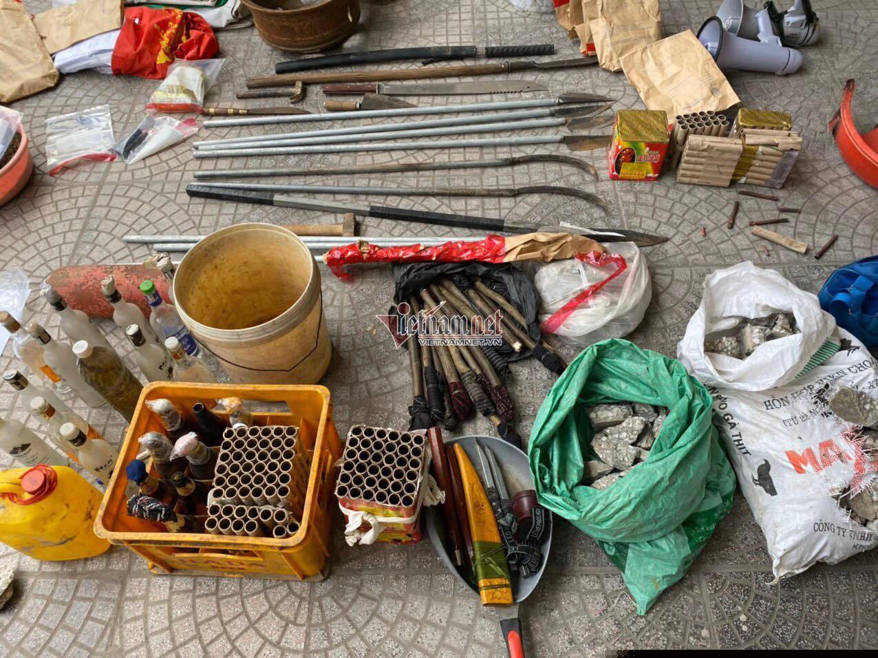 3 chiến sĩ công an đã hy sinh do bị tấn công bằng bom xăng. Tại hiện trường đã thu giữ 8 quả lựu đạn, hàng chục dao phóng, 20 chai bom xăng chưa sử dụng và nhiều pháo nổ.