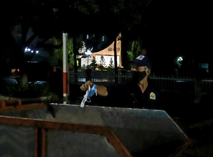 Anh Nguyễn Thanh Phong, nhân viên vệ sinh môi trường đô thị đang nhặt những chiếc khẩu trang mà một số người vô ý thức đã ném ra đường sau khi sử dụng.